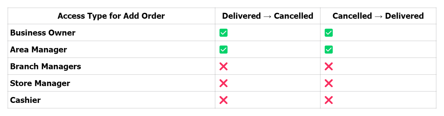 Order Status Update Permissions by Role